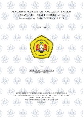 Murtadha, Muh. Dzaky (2025) PENGARUH KONSENTRASI CO2 DAN INTENSITAS CAHAYA TERHADAP PRODUKTIVITAS Scenedesmus sp. PADA MEDIA KULTUR. Undergraduate thesis, UPN VETERAN JAWA TIMUR.
