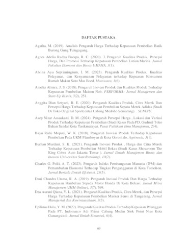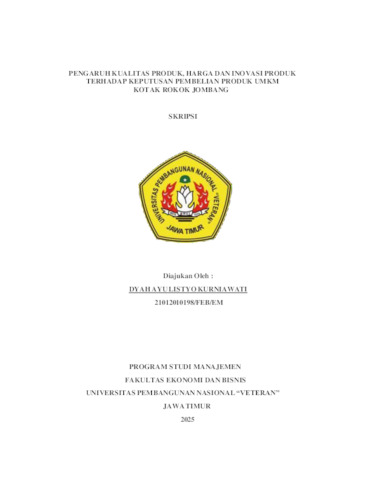 Kurniawati, Dyah Ayu Listyo (2025) Pengaruh Kualitas Produk, Harga dan Inovasi Produk Terhadap Keputusan Pembelian Produk UMKM Kotak Rokok Jombang. Undergraduate thesis, UPN Veteran Jawa Timur.