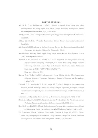 The increasingly competitive development of the smartphone industry in Indonesia has driven companies to innovate in advertising, product quality, and brand image to increase consumer repurchase intention. This study aims to analyze the influence of these three variables on repurchase intention of Samsung smartphones in Surabaya. The method used was a quantitative approach with a purposive sampling technique from 114 respondents. Data were collected through an online questionnaire. The criteria for respondents were at least 17 years old, had purchased and used a Samsung smartphone for one year, and resided in Surabaya. Data analysis was conducted using the Partial Least Squares (PLS) method to test validity, reliability, and hypothesis testing. The results showed that advertising and brand image had a positive and significant effect on repurchase intention, while product quality had an insignificant positive effect on repurchase intention. Keywords: Advertising, Product Quality, Brand Image, Repurchase Intention, Smartphone, Samsung