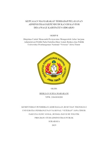Maharani, Berlian Surya (2025) KEPUASAN MASYARAKAT TERHADAP PELAYANAN ADMINISTRASI KEPENDUDUKAN DI KANTOR DESA WAGE KABUPATEN SIDOARJO. Undergraduate thesis, UPN Veteran Jawa Timur.