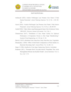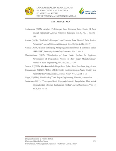 Djunaidy, Natasya Salsabila Putri (2024) Analisis Kebutuhan Luas Permukaan Pemanas Juice Heater I di PG. Meritjan Kediri. Project Report (Praktek Kerja Lapang dan Magang). UPN Veteran Jawa Timur, UPN Veteran Jawa Timur. (Unpublished)