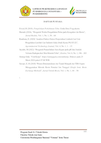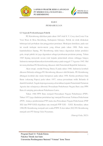 Fatkhurin, Elma (2024) PERHITUNGAN NERACA MASSA PADA STASIUN MASAKAN DAN PUTERAN DI PG KREMBOONG. Project Report (Praktek Kerja Lapang dan Magang). Universitas Pembangunan Nasional "Veteran" Jawa Timur. (Unpublished)