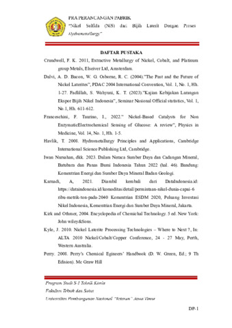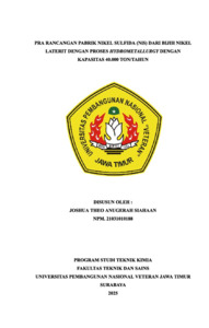 Siahaan, Joshua Theo Anugerah (2025) PRA PERANCANGAN PABRIK NIKEL SULFIDA (NiS) DARI BIJIH NIKEL LATERIT DENGAN PROSES HYDROMETALLLURGY DENGAN KAPASITAS SEBESAR 40.000 TON/TAHUN. Undergraduate thesis, Universitas Pembangunan Nasional Veteran "Jawa Timur".
