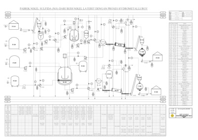A Nickel Sulfide (NiS) plant with a capacity of 40,000 tons per year will be built in Wawontoa District, East Luwu Regency, South Sulawesi. The plant will operate 24 hours per day and 330 days per year. This nickel sulfide plant utilizes laterite ore sourced from PT Vale Indonesia. Nickel sulfide (NiS) can be used as the main raw material for the production of Lithium-Ion (Li-Ion) batteries. The laterite ore will be mixed with water and then reacted with sulfuric acid, with 20% excess sulfuric acid. The reactor output will be separated into solid and liquid phases using a rotary vacuum filter. The solid phase will be separated and stored in a warehouse to be delivered and processed by a third party. The liquid phase is fed into the second reactor tower to be precipitated using H₂S gas, where the reaction products will again be separated into solid and liquid phases using a rotary vacuum filter. The resulting solid product will be stored in a warehouse.