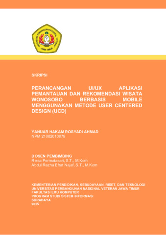 Ahmad, Yanuar Hakam Rosyadi (2025) Perancangan UI/UX Aplikasi Pemantauan dan Rekomendasi Wisata Wonosobo Berbasis Mobile Menggunakan Metode User Centered Design (UCD). Diploma thesis, UPN "Veteran" Jawa Timur.