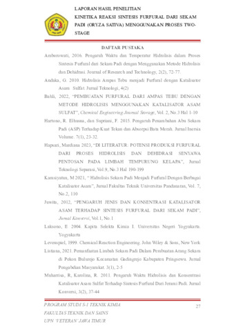Siahaan, Joshua Theo Anugerah and Ramadhan, Achmad Aris Syahrul (2025) KINETIKA REAKSI PEMBENTUKAN FURFURAL DARI SEKAM PADI (ORYZA SATIVA) DENGAN METODE TWO-STAGE. Undergraduate thesis, Universitas Pembangunan Nasional Veteran "Jawa Timur".