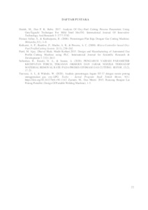 Ferdiansyah, Naufal Felix (2025) “Pengaruh Kecepatan Potong dan Ketebalan Plat Terhadap Hasil Pemotongan Gas Cutting Machine” (Studi Kasus : PT. Aneka Jasa Teknik Gresik, Divisi Fabrikasi). Project Report (Praktek Kerja Lapang dan Magang). UPN "Veteran" Jawa Timur. (Unpublished)