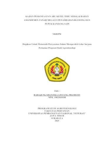 Pramesti, Rahajeng Shantika Lintang (2025) KAJIAN PEMANFAATAN ABU KETEL TEBU SEBAGAI BAHAN AMANDEMEN TANAH MELALUI PENAMBAHAN BLOTONG DAN PUPUK KANDANG SAPI. Undergraduate thesis, UPN "Veteran" Jawa Timur.