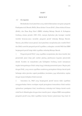 Dewi, Kharisma Tri Buana (2025) PENGARUH PENDAPATAN ASLI DAERAH (PAD), DANA ALOKASI UMUM (DAU), DANA ALOKASI KHUSUS (DAK), DAN DANA BAGI HASIL (DBH) TERHADAP BELANJA DAERAH DI KABUPATEN JOMBANG PERIODE 2005–2024. Undergraduate thesis, UPN VETERAN JAWA TIMUR.