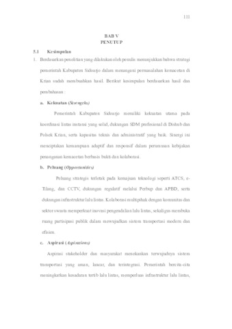 Rasyid, Hafizh Fadli Al (2025) STRATEGI PEMERINTAH DAERAH SIDOARJO DALAM MENGATASI KEMACETAN LALU LINTAS DI KECAMATAN KRIAN. Undergraduate thesis, UPN Veteran Jawa Timur.