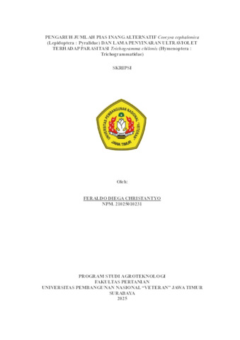 Christantyo, Feraldo Diega (2025) PENGARUH JUMLAH PIAS INANG ALTERNATIF Corcyra cephalonica (Lepidoptera : Pyralidae) DAN LAMA PENYINARAN ULTRAVIOLET TERHADAP PARASITASI Trichogramma chilonis (Hymenoptera : Trichogrammatidae). Undergraduate thesis, Universitas Pembangunan Nasional "Veteran" Jawa Timur.