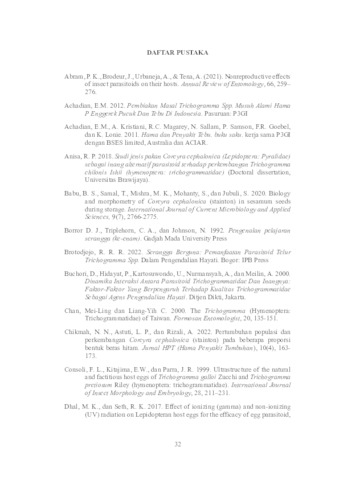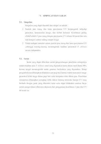 PENGARUH JUMLAH PIAS INANG ALTERNATIF Corcyra cephalonica (Lepidoptera : Pyralidae) DAN LAMA PENYINARAN ULTRAVIOLET TERHADAP PARASITASI Trichogramma chilonis (Hymenoptera : Trichogrammatidae)