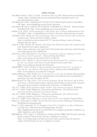 Jasmine, Siti Fatimah (2025) IMPLEMENTASI DIPLOMASI PUBLIK UNI EMIRAT ARAB DALAM FORMULA ONE ABU DHABI GRAND PRIX TAHUN 2024. Undergraduate thesis, Universitas Pembangunan "Nasional" Veteran Jawa Timur.