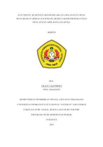 Salindeho, Grace (2025) ELECTRONIC READINESS AKTOR PELAKSANA PELAYANAN CEPAT MASYARAKAT CERDAS (PACEMACE) DI DINAS KEPENDUDUKAN DAN PENCATATAN SIPIL KOTA JAYAPURA. Undergraduate thesis, UPN Veteran Jawa Timur.