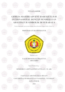 Prasetyo, Fajar Dwikirana (2026) Gereja Masehi Advent Hari Ketujuh Internasional dengan Pendekatan Arsitektur Simbolik di Surabaya. Undergraduate thesis, UPN Veteran Jawa Timur.