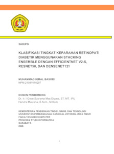 Basori, Muhammad Iqmal (2026) KLASIFIKASI TINGKAT KEPARAHAN RETINOPATI DIABETIK MENGGUNAKAN STACKING ENSEMBLE DENGAN EFFICIENTNET V2-S, RESNET50, DAN DENSENET121. Undergraduate thesis, UPN Veteran Jawa Timur.