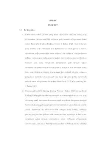 Radzakani, Navadz Syaikhul (2026) KRIMINALISASI TERHADAP PELAKU YANG MENYATAKAN DIRINYA MEMPUNYAI KEKUATAN GAIB (SANTET) PADA PASAL 252 KUHP. Undergraduate thesis, UPN VETERAN JAWA TIMUR.