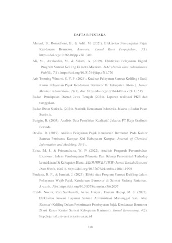 Hidayatullah, Nur Lathif (2026) Efektivitas Program Samsat Keliling (SAMKEL) dalam Pelayanan Pemungutan Pajak Kendaraan Bermotor (PKB) pada Kabupaten Blora. Undergraduate thesis, UPN Veteran Jawa Timur.