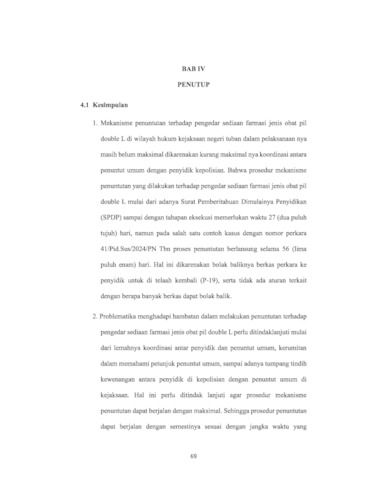 Narita, Tarasari (2026) IMPLEMENTASI PENUNTUTAN TERHADAP PENGEDAR SEDIAAN FARMASI OBAT JENIS PIL DOUBLE L (STUDI KASUS DI KEJAKSAAN NEGERI TUBAN). Undergraduate thesis, UPN VETERAN JAWA TIMUR.