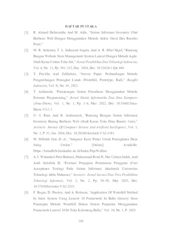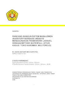 Saputra, Muhammad Aghis Sufiantoro (2026) RANCANG BANGUN SISTEM MANAJEMEN INVENTORY BERBASIS WEBSITE MENGGUNAKAN FRAMEWORK LARAVEL DENGAN METODE WATERFALL (STUDI KASUS: TOKO KAROMAH, MULYOREJO). Undergraduate thesis, UPN Veteran Jawa Timur.