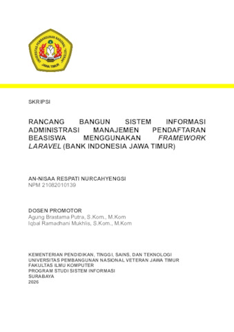 Nurcahyengsi, An-Nisaa Respati (2026) Rancang Bangun Sistem Informasi Administrasi Manajemen Pendaftaran Beasiswa Menggunakan Framework Laravel (Bank Indonesia JawaTimur). Undergraduate thesis, UPN Veteran Jawa Timur.