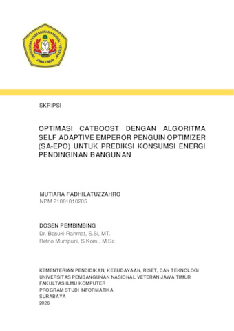 Fadhilatuzzahro, Mutiara (2026) Optimasi Catboost Dengan Algoritma Self Adaptive Emperor Penguin Optimizer (Sa-Epo) Untuk Prediksi Konsumsi Energi Pendinginan Bangunan. Undergraduate thesis, UPN Veteran Jawa Timur.
