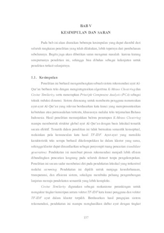 | Uncontrolled Keywords: | Sistem Rekomendasi, Al-Qur’an, K-Means Clustering, Cosine Similarity, Principle Component Analysis, Precision. | ||||||||||||