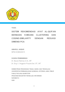 Akbar, Amarul (2026) Sistem Rekomendasi Ayat Al-Qur'an Berbasis K-Means Clustering dan Cosine-Similarity dengan Reduksi Dimensi PCA. Masters thesis, Univeritas Pembangunan Nasional (Veteran) Jawa Timur.