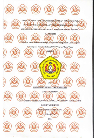 Wibowo, Gregorius (2026) Implementasi Asas Umum Pemerintahan Yang Baik Pada Penetapan Harga Eceran Tertinggi Berdasarkan Peraturan Menteri Perdagangan Nomor 18 Tahun 2024. Undergraduate thesis, UPN "Veteran" Jawa Timur.