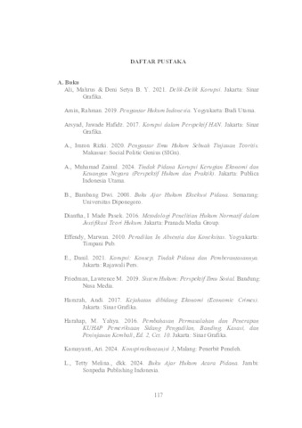 Wardhani, Shinfani Kartika (2026) PENDEKATAN FOLLOW THE MONEY SEBAGAI PENEGAKAN HUKUM PADA EKSEKUSI HUKUMAN PIDANA TAMBAHAN UANG PENGGANTI DALAM PERKARA KORUPSI SECARA IN ABSENTIA. Masters thesis, UNIVERSITAS PEMBANGUNAN NASIONAL “VETERAN” JAWA TIMUR SURABAYA.