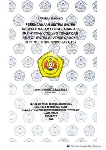 Salsabila, Adinda Permata (2025) Perencanaan Sistem Water Recycle Dalam Pengolahan Air Blowdown Cooling Tower dan Reject Water Reverse Osmosis di PT Multi Spunindo Jaya Tbk. Project Report (Praktek Kerja Lapang dan Magang). UPN Veteran Jawa Timur. (Unpublished)