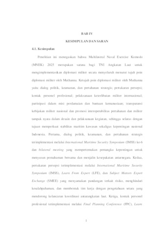 Decca Harits, Laksamana Zulfikar Satria (2025) IMPLEMENTASI DIPLOMASI MILITER TNI ANGKATAN LAUT DALAM MULTILATERAL NAVAL EXERCISE KOMODO (MNEK) 2025. Undergraduate thesis, UPN Veteran Jawa Timur.
