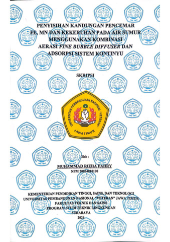 Fahry, Muhammad Rizha (2026) Penyisihan Kandungan Pencemar Fe, Mn Dan Kekeruhan Pada Air Sumur Menggunakan Kombinasi Aerasi Fine Bubble Diffuser Dan Adsorpsi Sistem Kontinyu. Undergraduate thesis, Universitas Pembangunan Nasional “Veteran” Jawa Timur.