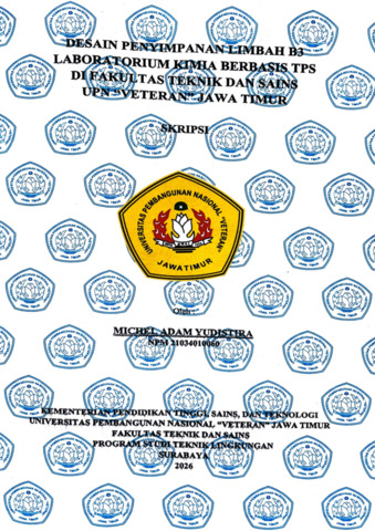 Yudistira, Michel Adam (2026) Desain Penyimpanan Limbah B3 Laboratorium Kimia Berbasis TPS di Fakultas Teknik dan Sains UPN "Veteran" Jawa Timur. Undergraduate thesis, UPN VETERAN JAWA TIMUR.