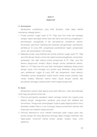 Prasojo, Ahmad Wahfi Nuris Eko Proses Produksi Nugget Ayam Di PT. Raja Jeva Nisi Karawang, Jawa Barat. Project Report (Praktek Kerja Lapang dan Magang). UPN Veteran Jawa Timur. (Unpublished)