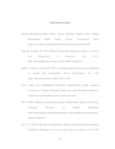 Nurmahfudi, Zahnun Zahrani (2026) Analisis Implementasi Pemberian Bantuan Luar Negeri United States Agency for International Development (USAID) untuk Mengatasi Kemiskinan di Nigeria Tahun 2020 - 2024. Undergraduate thesis, Universitas Pembangunan Nasional "Veteran" Jawa Timur.