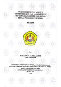 Akmal, Muhammad Fairuz (2026) Analisis Efektivitas Adsorpsi Kromium Limbah Cair Laboratorium Menggunakan Adsorben Komersial Dengan Pendekatan Kinetika. Undergraduate thesis, Universitas Pembangunan Nasional "Veteran" Jawa Timur.