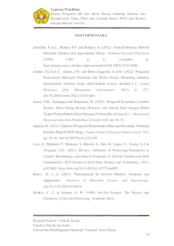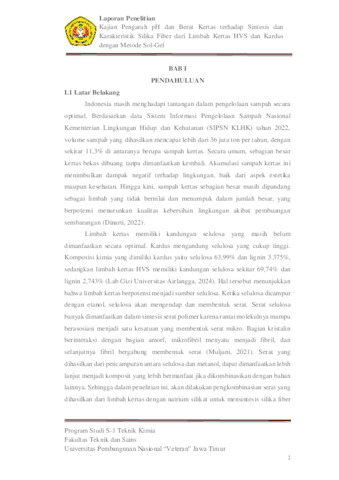 Kajian Pengaruh pH dan Berat Kertas Terhadap Sintesis dan Karakteristik Silika Fiber dari Limbah Kertas HVS dan Kardus dengan Metode Sol-Gel
