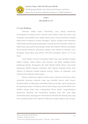 Ahmad, Naufal Ramadhan (2026) Pra Rancangan Pabrik Amil Alkohol dari Pentane dan Klorin dengan Proses Klorinasi-Hidrolisis Kapasitas 50.000 Ton/Tahun. Undergraduate thesis, UPN Veteran Jawa Timur.