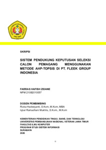 Zidane, Farras Hafish (2026) SISTEM PENDUKUNG KEPUTUSAN SELEKSI CALON PEMAGANG MENGGUNAKAN METODE AHP-TOPSIS DI PT. FLEEK GROUP INDONESIA. Undergraduate thesis, UPN Veteran Jawa Timur.