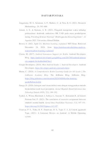 Andriani, Alfina and Mahdiyah, Yumna Kamilah PENGEMBANGAN APLIKASI BERBASIS ANDROID UNTUK MANAJEMEN TUGAS MENGGUNAKAN BAHASA PEMROGRAMAN KOTLIN. Project Report (Praktek Kerja Lapang dan Magang). -. (Unpublished)