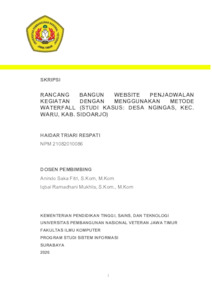 Respati, Haidar Triari (2026) RANCANG BANGUN WEBSITE PENJADWALAN KEGIATAN DENGAN MENGGUNAKAN METODE WATERFALL (STUDI KASUS: DESA NGINGAS, KEC. WARU, KAB. SIDOARJO). Undergraduate thesis, UPN Veteran Jawa Timur.