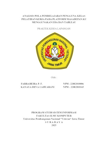 Farraheira, Fauziah and Kanaya, Deva (2025) ANALISIS POLA PEMBELAJARAN PENGGUNA KELAS PELATIHAN KERJA PADA PLATFORM MASADEPAN.KU MENGGUNAKAN EDA DAN TABLEAU. Project Report (Praktek Kerja Lapang dan Magang). UPN VETERAN JAWA TIMUR. (Unpublished)