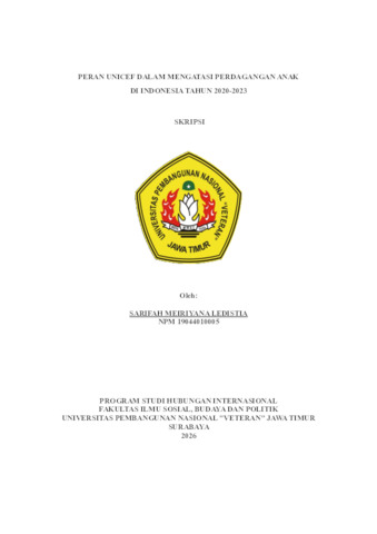 Ledistia, Sarifah Meiriyana (2026) Peran UNICEF Dalam Mengatasi Perdagangan Anak Di Indonesia Tahun 2020-2023. Undergraduate thesis, UPN Veteran Jawa Timur.