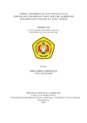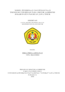 Aditiawan, Firza Prima (2026) MODEL PENERIMAAN DAN PENGGUNAAN TEKNOLOGI INFORMASI PADA SEKTOR AGRIBISNIS DI KABUPATEN PASURUAN JAWA TIMUR. Doctoral thesis, Universitas Pembangunan Nasional "Veteran" Jawa Timur.