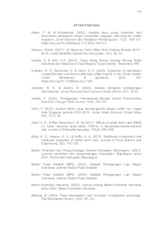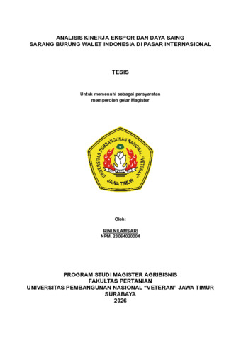 Nilamsari, Rini (2026) ANALISIS KINERJA EKSPOR DAN DAYA SAING SARANG BURUNG WALET INDONESIA DI PASAR INTERNASIONAL. Masters thesis, Universitas Pembangunan Nasional "Veteran" Jawa Timur.