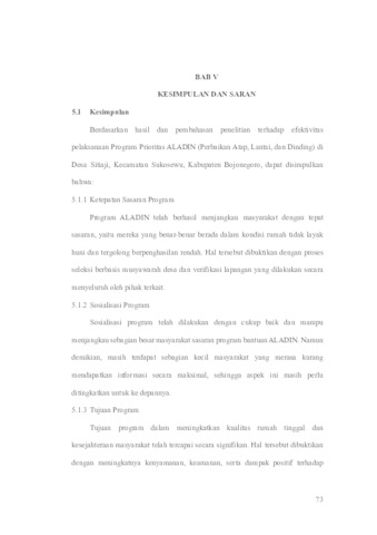 Efektivitas Pelaksanaan Program Prioritas Aladin Dalam Peningkatan Kesejahteraan Masyarakat Desa Sitiaji, Kecamatan Sukosewu Kabupaten Bojonegoro