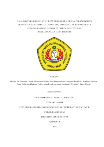 Wilopo, Muhammad Ilham Muladi (2026) Analisis Perlindungan Hukum Terhadap Korban Pelanggaran Pencurian Data Pribadi Untuk Pinjaman Online Berdasarkan Undang-Undang Nomor 27 Tahun 2022 Tentang Perlindungan Data Pribadi. Undergraduate thesis, UPN Veteran Jawa Timur.
