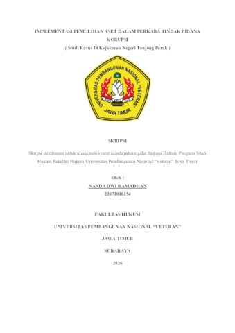 Ramadhan, Nanda Dwi (2026) IMPLEMENTASI PEMULIHAN ASET DALAM PERKARA TINDAK PIDANA KORUPSI ( Studi Kasus Di Kejaksaan Negeri Tanjung Perak ). Undergraduate thesis, UPN Veteran Jawa Timur.