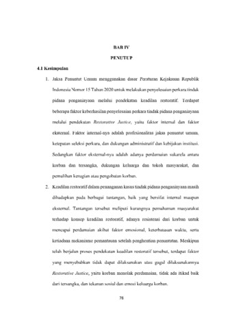 Hidayatallah Widjajanto, Faizal (2026) IMPLEMENTASI PENYELESAIAN PERKARA TINDAK PIDANA PENGANIAYAAN BERDASARKAN KEADILAN RESTORATIF PADA TAHAP PENUNTUTAN (STUDI DI KEJAKSAAN NEGRI TANJUNG PERAK). Undergraduate thesis, UPN Veteran Jawa Timur.